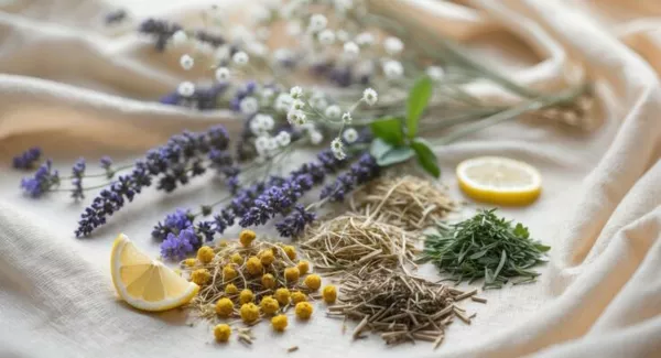 relaxing-afternoon-with-herbal-ingredients-and-fresh-flowers-on-soft-fabric-background-photo.webp